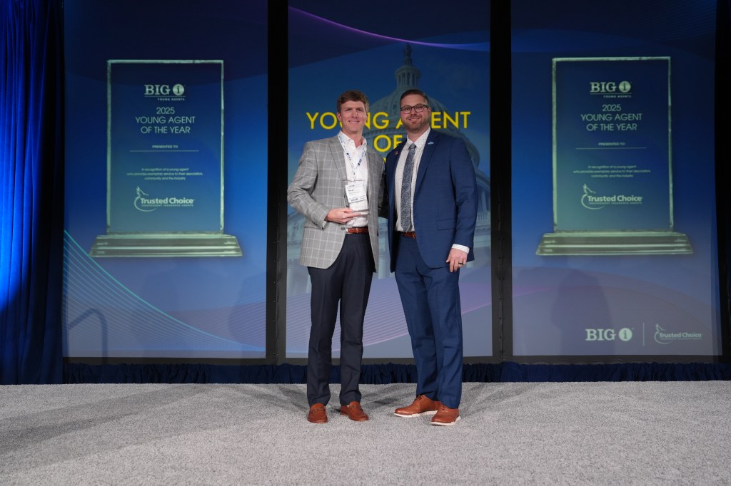 “Under his leadership, their Young Agents Committee reached extraordinary heights in advocacy and fundraising, raising over $58,000 for InsurPac, with nearly $20,000 coming directly from 61 Young Agents,” said Cash McMillen, national Big “I” Young Agents Committee chair and executive vice president of operations at The Cashion Company in Little Rock, Arkansas, as he presented the award.